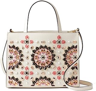 Leather Boar skin embossed cement leather with matching trim. Open-top satchel bag. Exterior : Gold-tone hardware ; Mosaic-inspired floral embellishments. Interior : Dual interior compartments with center-zip divider ; zip, wall and smartphone pockets ; Suede lining protective metal feet ; Double flat handles drop 4.5" : Additional attachable cross body strap 20.5-23'' drop ; 10.5" L x 8" H x 5" W.