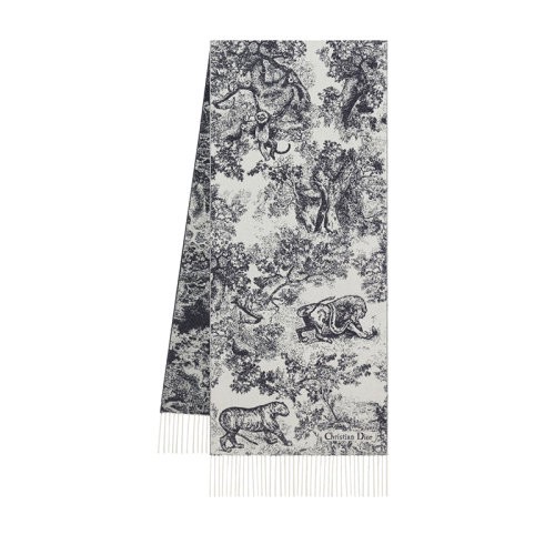 【服装】DIOR/迪奥23新款 男女通用海军蓝色羊绒印花徽标流苏边围巾41JOU215I159_C540