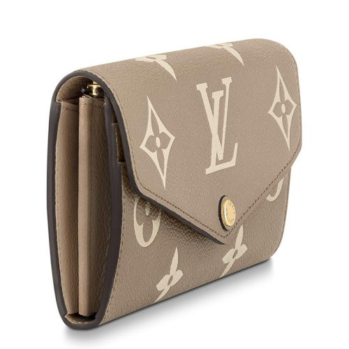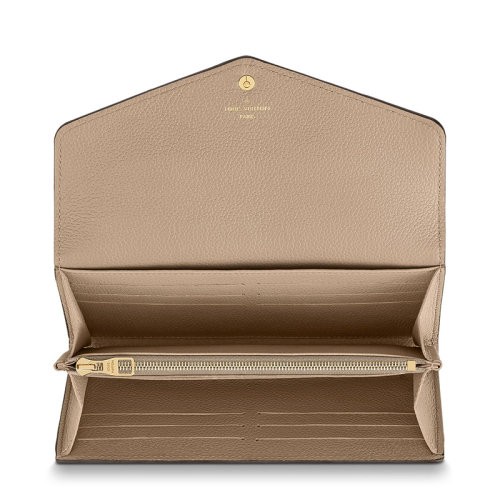 【新品包包】Louis Vuitton/路易威登 22春夏新款SARAH系列 鸽子灰/奶油白双色调老花印花粒面牛皮革金扣翻盖开合长款钱包M81049